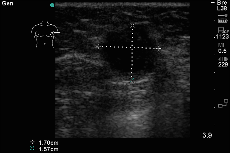 Tapintható emlőelváltozások esetén kimagasló jelentősége van az ultrahang vizsgálatnak. Eldönthető, hogy az adott elváltozás szerkezetileg milyen jellegû, folyadéktartalmú (cysta), avagy tömöttebb szerkezetû, mekkora, pontosan hol helyezkedik el, milyenek a kontúrjai. Ezek ismeretében nagy valószínûséggel megítélhető, hogy rossz- vagy jóindulatú elváltozásról van-e szó.